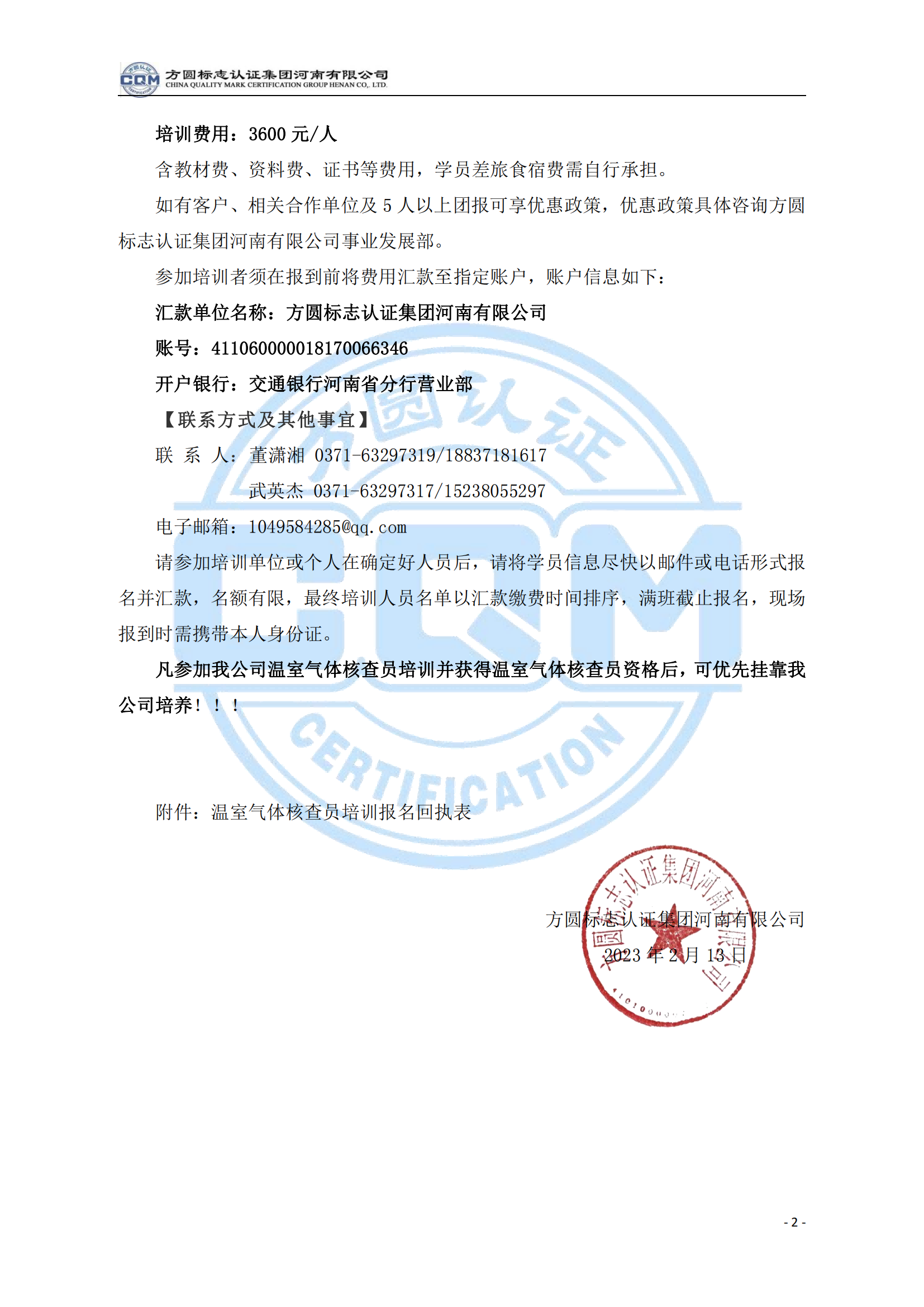 方圆标志认证集团河南有限公司关于举办温室气体核查员培训班的通知